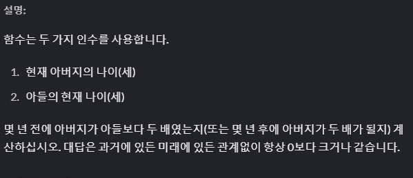 public static int TwiceAsOld(int dadYears, int sonYears){