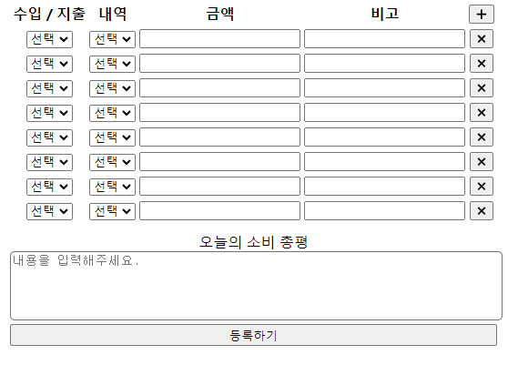 1. 추가 버튼 클릭 시 <tr> 태그가 밑으로 하나씩 추가 됨